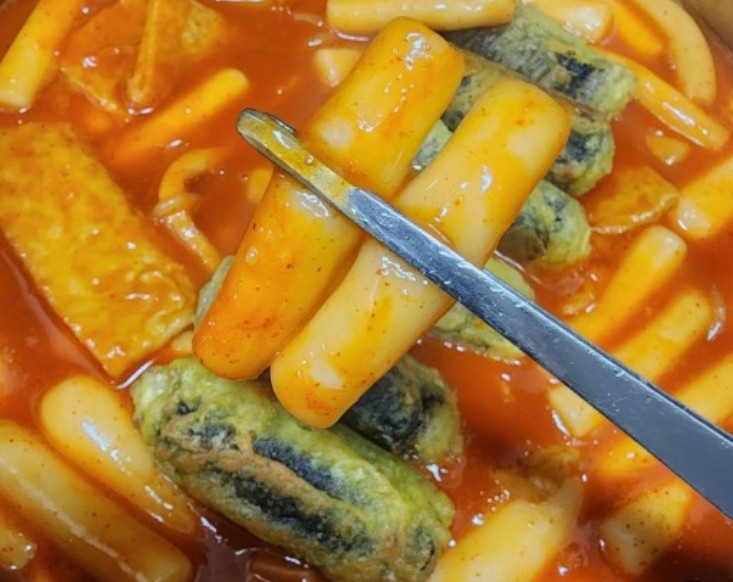 소스가 끓으면 떡, 어묵, 얇게 썬 양파를 팬에 넣으세요. 떡에 소스가 골고루 묻도록 부드럽게 저으세요. 혼합물을 10-15분 정도 익히거나 떡이 부드러워져서 소스의 맛이 흡수될 때까지 익히세요. 요리 과정이 끝날 때쯤 파와 삶은 달걀을 넣어주세요. 달걀은 소스를 흡수하고 쫄깃한 떡과 아삭한 야채와 크림 같은 대조를 보여줍니다.
