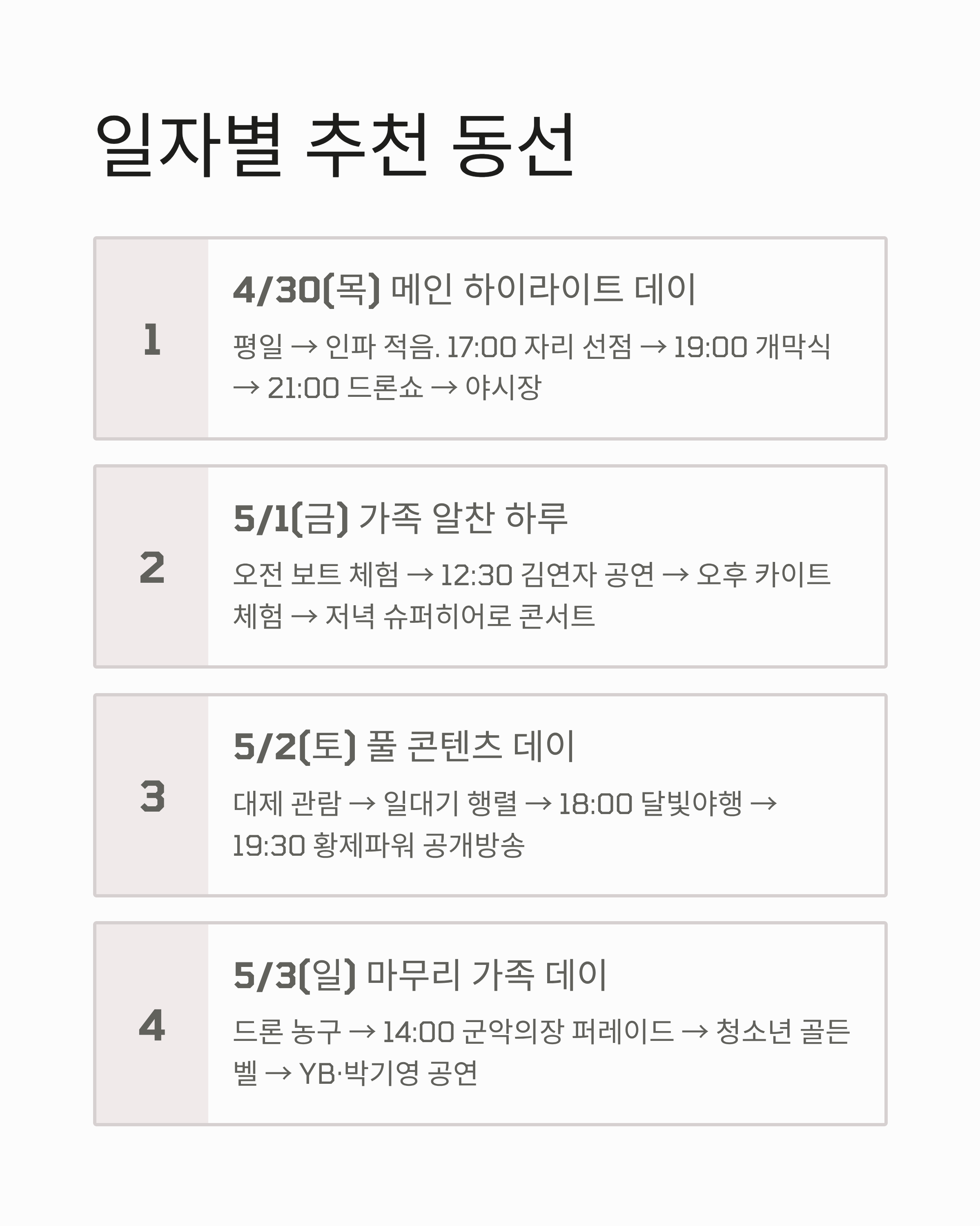 4. 일자별 추천 동선 - 상황별 맞춤 가이드