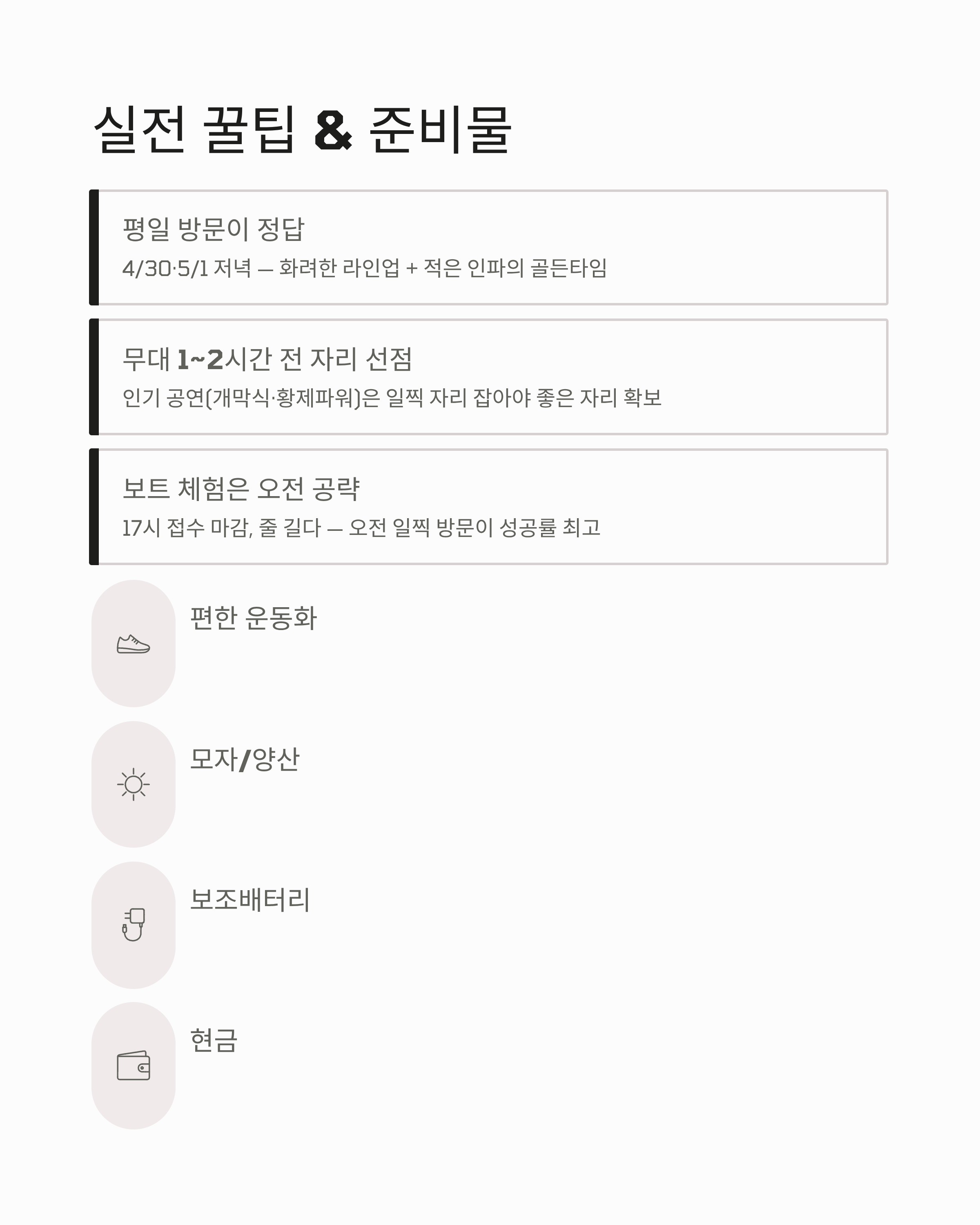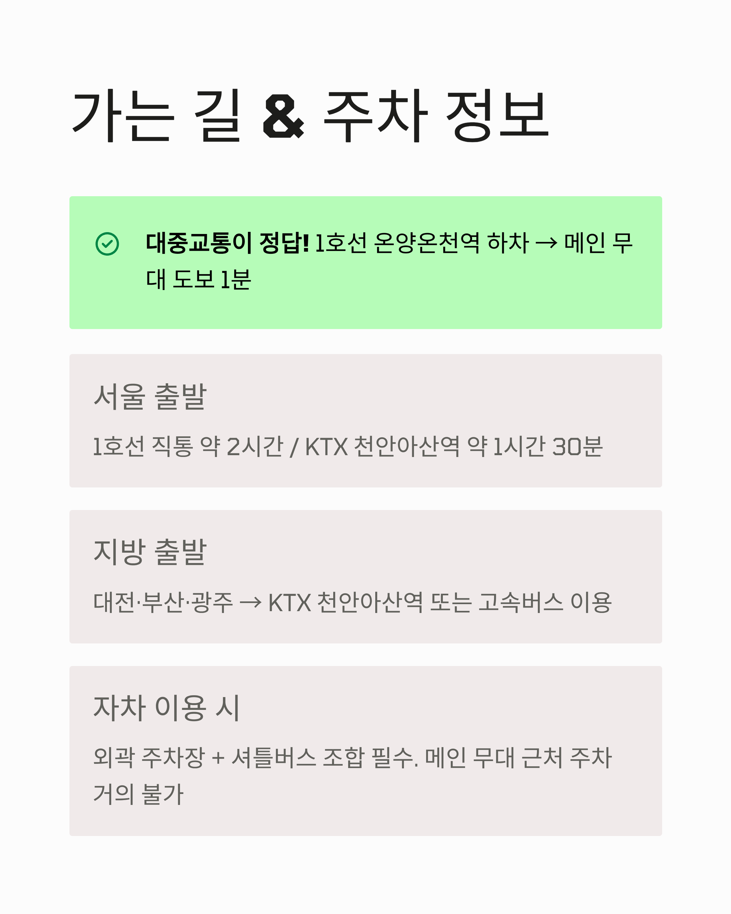 | 주차 팁 | 외곽 주차 + 셔틀 조합이 정답 |